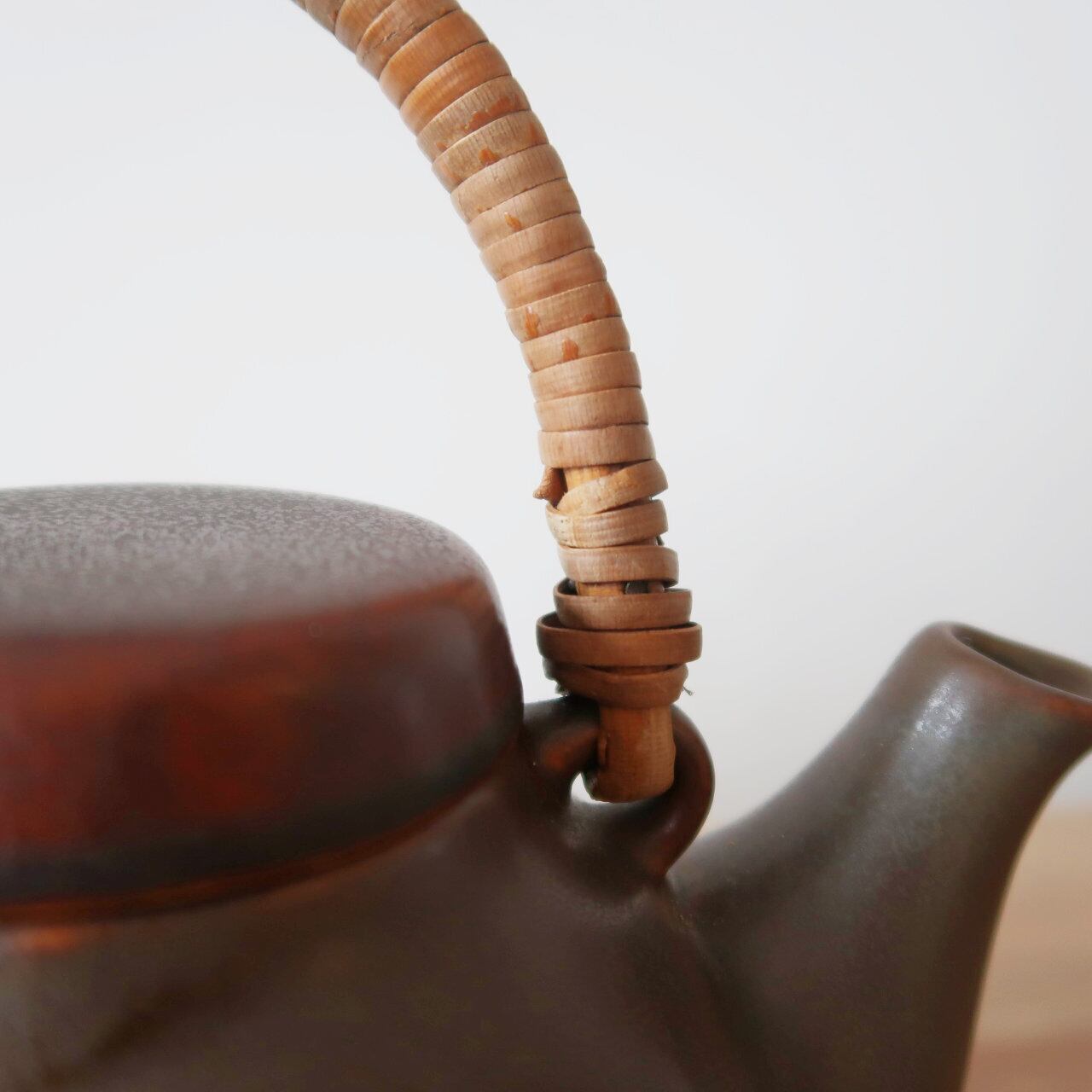 ぽってりとしたフォルム・茶色のグラデーション・籐の取っ手のデザインが美しく、ARABIA社を代表する人気デザイナーUlla Procope(ウラ・プロコッペ)が手がけています。